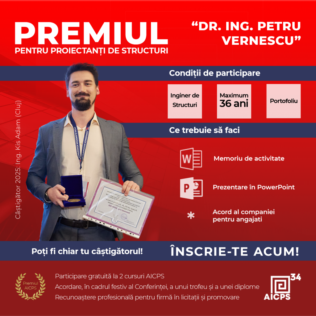 - Premiul AICPS de Excelență - Pentru companiile de proiectare care ridică ștacheta în proiectarea structurală