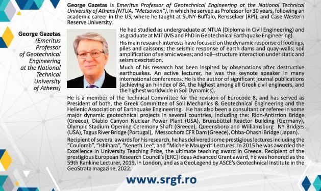 CURSUL DE FORMARE PROFESIONALĂ CONTINUĂ ÎN DOMENIUL INGINERIEI GEOTEHNICE susținut de Prof.em. George Gazetas - 23-24 Aprilie 2026